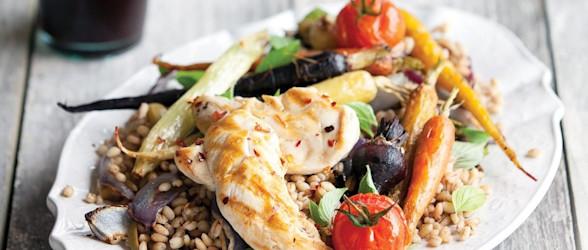 Griddled chicken with pearl barley salad